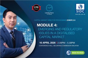 Strong institutions are the foundation of resilient and trustworthy capital markets. In today’s environment defined by heightened regulatory scrutiny, rapid technological change and increasing stakeholder expectations, directors of licensed intermediaries face unprecedented levels of responsibility and personal accountability. This imperative is reinforced by the Capital Market Masterplan 2026–2030 (CMP4), which places governance at the core of capital market development and positions regulatory and governance excellence as a critical foundation for a vibrant, inclusive, sustainable and regionally connected capital market.